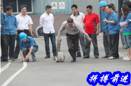 為了培養(yǎng)公司員工的消防安全責任意識,提高公司消防安全管理水平,同時也為了讓員工學會和更好的掌握必要的消防安全知識和技能,熟悉并正確使用各種消防器材的方法,防止消防安全事故的發(fā)生。5月9日,公司在輸送帶成品存放區(qū)舉辦了別開生面的消防演習比賽。